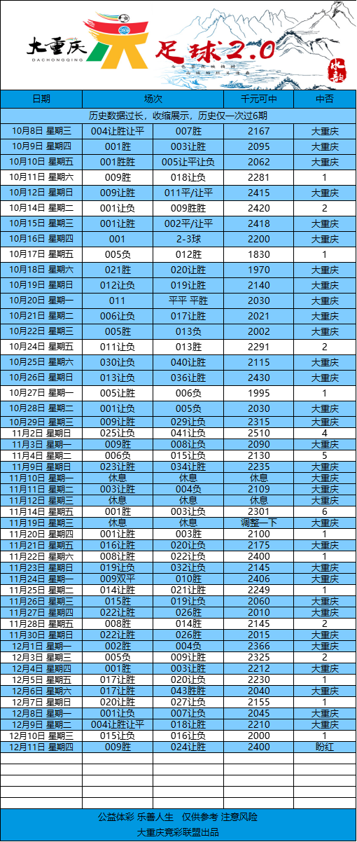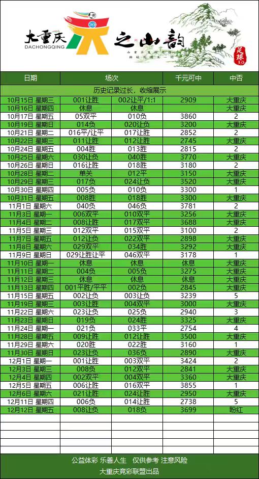 团队立足中国体彩,打造知名竞彩联盟渝人码头,在多个省市地区体彩行业颇具影响力,短时间内建立线下30多家联盟店,服务全国超过1000多家体彩店业主和数十万客户,其核心团队在专业足球技术分析方面具有行业领先水准,主打产品有渝人码头金银花系列、小熊系列、皇家系列,团队老师还参与到“大重庆”系列精品技术方案的推荐工作中,系列产品最受欢迎和关注的有金银花系列和小熊系列以及X10高赔,在全国各省市地区被广大业主和购彩者广泛使用和长期信任。